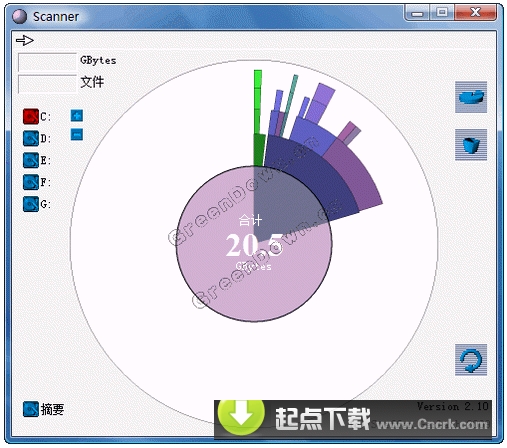 Scanner是用一個獨特的同心圓形統(tǒng)計圖表顯示您的硬盤或其他存儲設備使用情況的工具。 圖表中還可以顯示所有主要文件和文件夾的大小及在設備中存放的具體位置