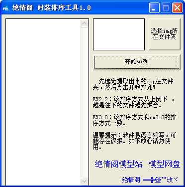 dnf絕情閣時裝排序 1.0 綠色版 dnf絕情閣時裝排序把提取出來的img放到一個文件夾內,然哈偶打開工具選定這個文件夾,點開始排列即可得知時裝整合順序。