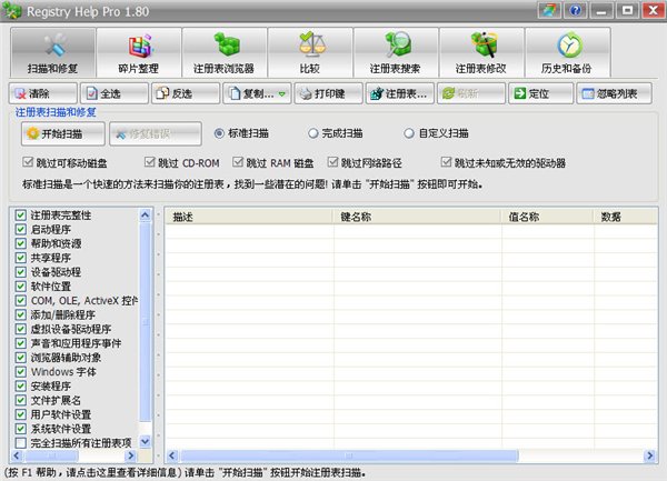 只是通過(guò)幾次單擊,Registry Help Pro可以幫助你清潔和修復(fù)您的注冊(cè)表、 磁盤碎片整理您的注冊(cè)表文件、 加快您的計(jì)算機(jī),和優(yōu)化您的系統(tǒng)。