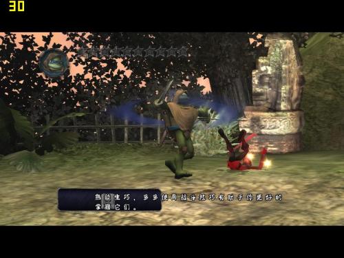 期待以久的忍者神龜2007終于下載完畢,早就被華麗精美的宣傳畫面吸引的我迫不及待的啟動了游戲。一開始當(dāng)然是慣例——精美的CG開場動畫。不過動畫比較短,而且很幽默。正式開始游戲歷程,給我的第一感覺就是:波斯王子回來了!錯,應(yīng)該是波斯王子的“師傅”。攀爬方式、動作都很像,但是速度超快,畢竟這個是“神龜”,而王子是“人類”,玩起來很爽快。游戲的角色當(dāng)然是4個神龜了,不過開始的時候不能隨意選擇角色,前面4關(guān)是每關(guān)一個神龜,基本上都是在介紹各自的特殊技能和基本操作模式,從第5關(guān)開始應(yīng)該才算進(jìn)入正題,除了少數(shù)劇情發(fā)展的需要只能用一個角色外,其他后面大部分關(guān)卡都能在游戲中隨意切換角色,而且在可以切換角色的關(guān)卡都能使用組合技,雖然不是特別的華麗,不過也算相當(dāng)?shù)木省S螒蜻^程不是無聊單調(diào)的,4個神龜會幾乎從一開始就邊聊天邊行動的走到最后(當(dāng)然是E文,聽來很舒服)。而在游戲中各自角色的性格特點(diǎn)也通過對話和動作充分的表現(xiàn)了出來。最鮮明的對比就是拿雙刀和拿雙節(jié)棍的2個,前者算是老鼠大師的最優(yōu)秀學(xué)生,冷靜且顯得充滿了武者的精神,他的特技都是穿墻這樣的高超忍術(shù);而雙節(jié)棍就完全是另一風(fēng)格,初次登場的時候嚇了我一跳,超級大頭神龜!非常可愛,我還在想這個怎么這種模樣,難道時隔數(shù)年再次變異?不過還好,這個我想游戲公司也是為了突出他的搞笑為他特別設(shè)計的開場形象,到后面當(dāng)然還是變回到正常神龜,他的特技更是幽默,跳在空中手雙節(jié)棍作直升機(jī)一樣旋轉(zhuǎn)可以浮空慢慢移動!而且,他居然很休閑的還邊飛邊哼歌!如果你一直飛不主動停下來他還會“被迫降落”(雙節(jié)棍不轉(zhuǎn)了,他看看天,看看地上,蹬幾腳再掉下來)。