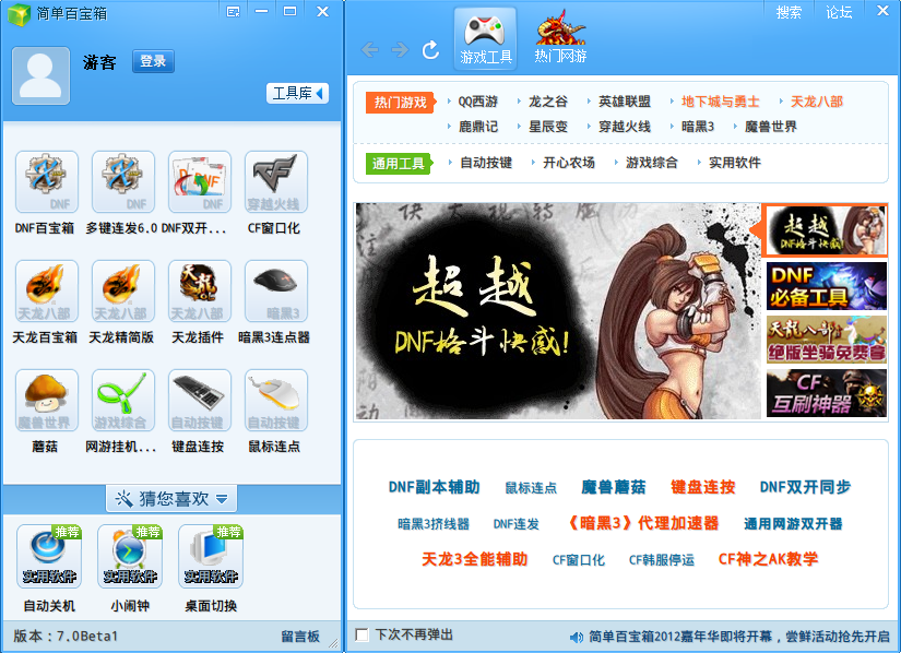 打開簡單百寶箱,即可在左邊框看見一些常見游戲輔助,dnf、cf、飛車……點擊圖標即可下載哦