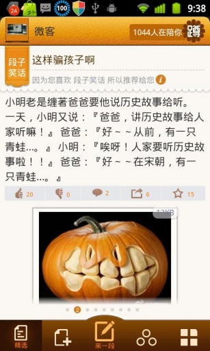 當(dāng)你看完一條段子,還要用手拖到下一條,萬一你的右手此刻正在忙碌呢(不解釋,哈哈)?,還是神馬都要靠手:( , 不用擔(dān)心,蹲蹲樂為你體貼的想到了,你只需點(diǎn)擊,便可以開啟自動(dòng)播放模式,此時(shí)系統(tǒng)會(huì)根據(jù)每條段子的內(nèi)容量和大多數(shù)的人閱讀速度,計(jì)算一個(gè)平均閱讀時(shí)長,時(shí)間達(dá)到該段子的最大閱讀時(shí)長,自動(dòng)為你跳轉(zhuǎn)到下一跳內(nèi)容,整個(gè)閱讀過程蹲蹲樂絕不會(huì)占用你的右手
