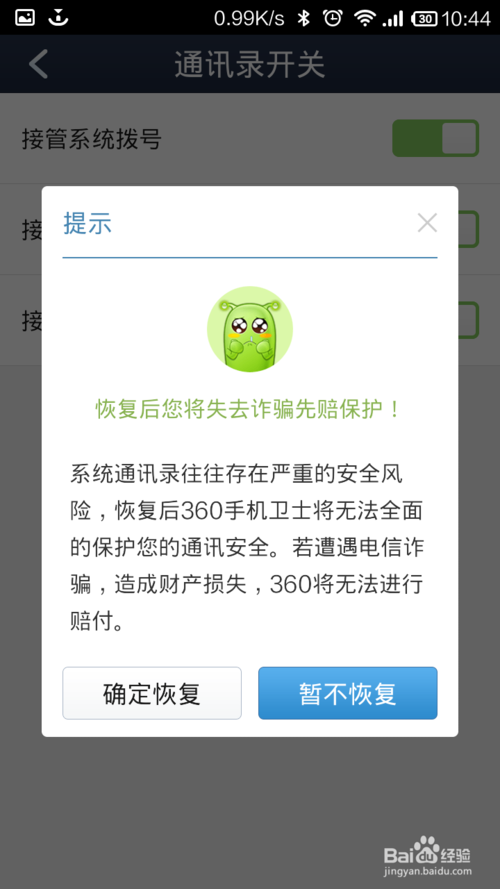 4.如果都沒有發(fā)現(xiàn),可能被其他第三方通訊錄或安全類軟件處理了,建議將他們關(guān)閉后再試