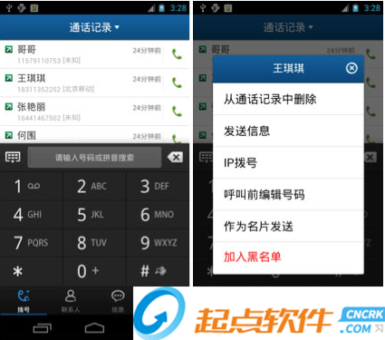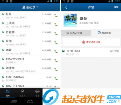 主界面底端的撥號和聯(lián)系人按鍵,具有連續(xù)點擊切換撥號面板和搜索面板的功能。