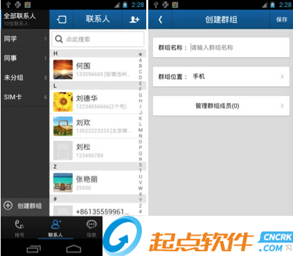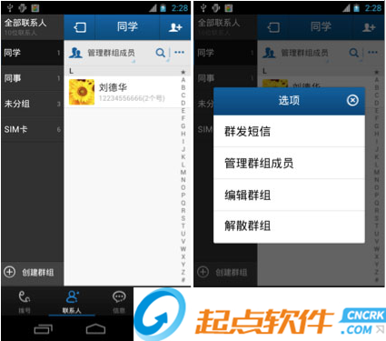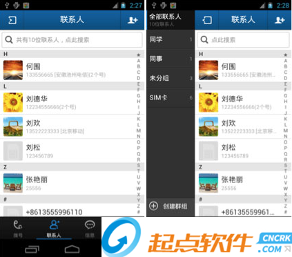 1、超級搜索:可通過拼音首字母/全拼/號碼搜索到目標聯(lián)系人2、短信群發(fā):可通過最近聯(lián)系/全部聯(lián)系人/群組多選群發(fā),并可保存群組,隨時修改