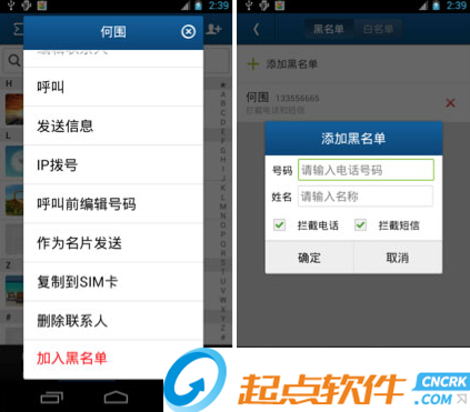 在撥號或聯(lián)系人列表中長按需要刪除的聯(lián)系人條目,在彈出菜單中選擇加入黑名單,或者在首頁點擊安全中心,點擊黑白名單條目,在打開的頁面頂端,點擊添加黑/白名單按鈕。