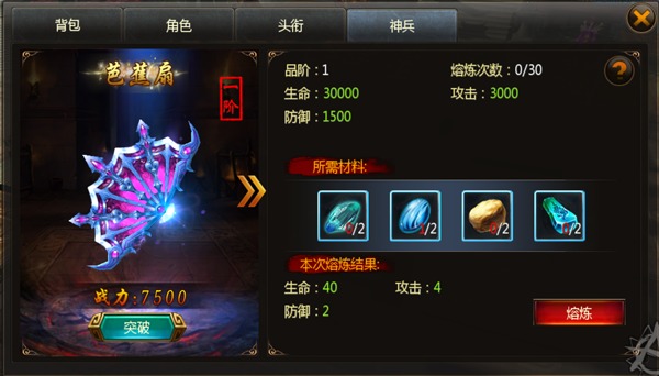 d神兵突破成功后,可提升神兵等階,神兵等階越高則神兵可熔煉的次數(shù)上限也隨之提升
