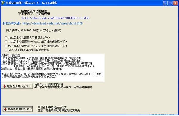 中興u830開機第一屏修改工具,生成u830第一屏,更清晰的版本選擇,可以生成128k,160k,256k版本