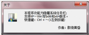 TaskBarHider 非常小巧,綠色無毒,可以直接使用,而且程序無可視窗口,僅有一個托盤圖標。隱藏顯示 快捷鍵為 Ctrl + ~(數(shù)字1左側(cè)的按鍵)