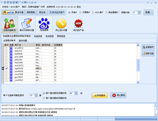 5、可以成百上千的管理知道帳號,大量養(yǎng)號;