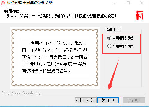 四、最后選擇是否啟用智*能標點,點擊關(guān)閉完成安裝。