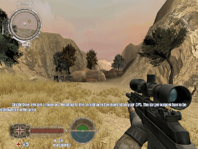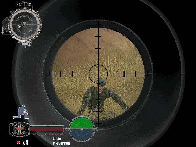 《特種神槍手4》 主角首先空降到敵后,并發(fā)現(xiàn)一個(gè)恐怖計(jì)劃(在美國(guó)本土實(shí)施核爆)。玩家必須穿越阿富汗沙漠,并通過冬季的俄羅斯,最終進(jìn)入一小南太平洋島國(guó)的叢林。玩家裝備有精準(zhǔn)的狙擊步槍。