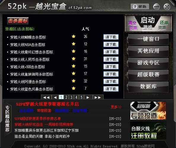 越光寶盒是重慶天極傳媒52PK游戲網(wǎng)針對(duì)廣大游戲玩家需求,精心設(shè)計(jì)的《穿越火線》游戲客戶端元素修改工具;集合了上千游戲擊殺圖標(biāo)、游戲音效、GUI界面皮膚等,全部綠色安全;基于本地游戲文件的“DIY”技術(shù)帶給您更迅速、更快捷、更豐富的全新游戲體驗(yàn)。