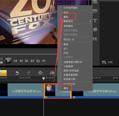 然后選擇你需要剪輯出去的視頻內(nèi)容,右擊選擇【刪除】,點擊一下。