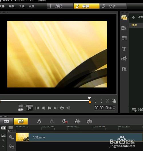 打開繪聲繪影,自動的新建了一個文件,我說得簡單些啊,直接在媒體里拉一個視頻在視頻軌。媒體庫里有視頻。。。。
