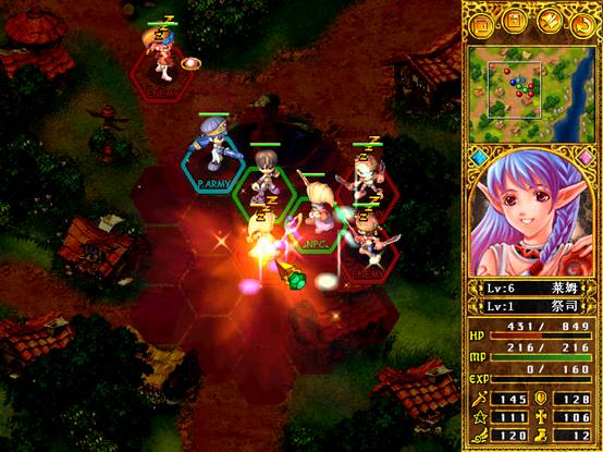 三級的祭司會火球術(shù),射程4格,范圍單人,-HP200基礎(chǔ)傷害。戰(zhàn)斗到后期,敵人的其他部分也會走過來,但是始終保持以希蜜為中心,這樣加血和戰(zhàn)斗兩不耽誤,而且希蜜有了火球術(shù)以后戰(zhàn)斗力也大幅度增加。