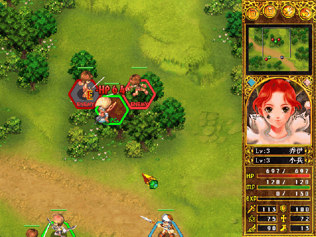 攻略指引:首先要讓妮雅靠近伊恩旁邊(伊恩是一名盜賊),然后,再讓妮雅靠近希蜜,這樣希蜜也會成為伙伴,而且希蜜是祭司,會回復(fù)術(shù)技能,自身發(fā)動,范圍2格,+Hp20%,所以戰(zhàn)斗起來非常的容易,然后妮雅和希蜜合力把上邊的兩個敵人殺死,下面的伊恩可以輕松的打倒身邊的那個敵人。也可以讓妮雅、希蜜和伊恩都先圍攻希蜜右邊的那個敵人。