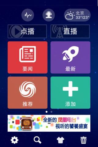 1. 鳳凰衛(wèi)視、鳳凰U Radio、北京廣播電臺等多個頻道24小時直播,隨時隨地想聽就聽。2. 收視金牌節(jié)目音頻集合,鏘鏘三人行、軍情觀察室等,并有音樂、暢銷小說、童話故事、評書相聲、公開課等精彩內(nèi)容,隨選隨聽。