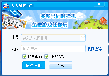 人人游戲助手是人人網(wǎng)針對(duì)廣大玩家推出的一款游戲輔助軟件??梢远鄮ぬ?hào)同時(shí)登錄、設(shè)置游戲定時(shí)提醒,方便家庭用戶或擁有小號(hào)的專業(yè)玩家掛機(jī)升級(jí)。農(nóng)場(chǎng)類、經(jīng)營類、寵物類、益智類等上萬款游戲,任你選擇、點(diǎn)擊即玩!是大眾網(wǎng)民的必備娛樂軟件。