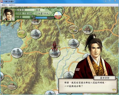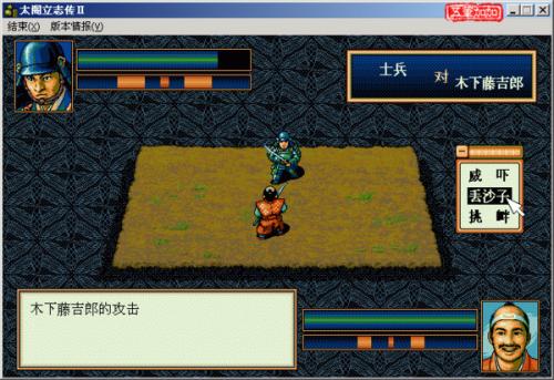 成為足輕組頭后可參加每逢一、四、七、十月頭五天召開的評(píng)定大會(huì),藤吉郎初次參加評(píng)定就在路上遭到佐佐成政與柴田勝家譏諷,他們根本不相信這個(gè)出身低微的小猴子能成大氣候。由信長主持的織田家評(píng)定大會(huì)準(zhǔn)時(shí)召開,信長開始會(huì)詢問藤吉郎的提案,可在合戰(zhàn)、戰(zhàn)備、調(diào)略和內(nèi)政四者間選擇一項(xiàng),藤吉郎提案后柴田勝家、丹羽長秀、林通勝和佐久間信盛等人相繼提出自己的議案。原來,某項(xiàng)議案是否通過要一般看所有支持這項(xiàng)議案的總票數(shù),如果信長心里是合戰(zhàn),不管票數(shù)的多少,都會(huì)是合戰(zhàn),這也就要求玩家能對(duì)日本的戰(zhàn)國史有一定的了解。如果藤吉郎的議案通過則可獲得50至200點(diǎn)不等的額外獎(jiǎng)勵(lì),自己的提案是否通過要看平時(shí)與大家關(guān)系,另外如果能盡快增加手下武將的信賴度,讓他們也有資格參加大殿評(píng)定則獲得的票數(shù)會(huì)更多,但剛開始時(shí)藤吉郎根本無法與柴田勝家派相比。不管你怎么檔讀檔,都不會(huì)選擇你的,除非是歷史條件下的合戰(zhàn)或者調(diào)略被你提出了,那也會(huì)被采納,筆者還是足輕組頭時(shí),曾有兩次的提案被通過,獲得了50點(diǎn)的額外獎(jiǎng)勵(lì),提案過后是選擇任務(wù),根據(jù)各人職務(wù)的不同可選擇不同的任務(wù),在職務(wù)篇和工作篇已有詳細(xì)的介紹,就不再羅嗦了。評(píng)定結(jié)束后,丹羽長秀問藤吉郎是否緊張并叮囑他做事務(wù)必要小心仔細(xì),不可馬虎。藤吉郎正要走開,突然看見一位美麗的女子正與柴田攀談,原來這就是織田的妹妹阿市,從她跟柴田勝家談話的神態(tài)看來兩人的關(guān)系似乎已經(jīng)相當(dāng)熟了......游戲者就要開始為工作奔波了。復(fù)命后一身輕松的藤吉郎走在大街上又遇到利家,利家告訴他織田派遣瀧川一益到三河地區(qū)與德川家康結(jié)盟。幾天后兩人在談話中說到了織田家內(nèi)的派系斗爭,利家希望藤吉郎能夠充分利用派系的力量發(fā)展自己,談吐之間兩人的關(guān)系不由得又近了幾分。一天,剛剛歸來的藤吉郎被邀請(qǐng)到利家宅中,并在那里認(rèn)識(shí)了池田恒興等幾位新朋友,大家討論到織田信長最近很可能移居小牧山,這樣做也是為進(jìn)攻美濃地區(qū)奠定基礎(chǔ)。很快織田果然把本城移到了小牧山城,不久的一次評(píng)定之后織田信長問藤吉郎知不知道為什么要搬家,這時(shí)會(huì)有3個(gè)選項(xiàng)讓你選,如果你選擇1,1,你會(huì)加30點(diǎn)勛功值,也就是回答是為了更利于進(jìn)攻美濃,如果選擇1,2你只能加10點(diǎn)勛功值,如果你選擇3,對(duì)你沒什么,如果你選擇第2,那你完了,降20點(diǎn)勛功值。接著在下一次的評(píng)定大會(huì)上,信長提出向美濃進(jìn)軍,持有異議的林通勝遭到斥責(zé),于是沒有人敢再反對(duì)。完成任務(wù)后歸來的藤吉郎聽見小牧街頭的村人談?wù)撎靷愔畼罚谑腔丶遗c彌彌商量要孩子。一天稻田大炊助跑來告訴藤吉郎:佐久間信盛、柴田派武將進(jìn)攻美濃大敗而歸。聽到這個(gè)消息,藤吉郎預(yù)感到這是一個(gè)絕妙的機(jī)會(huì),他的心中開始醞釀在墨俁事件中如何一現(xiàn)身手。同樣聞?dòng)嵍鴣淼姆漤氋R小六與小一郎都鼓勵(lì)藤吉郎抓住這個(gè)機(jī)會(huì),準(zhǔn)備迎接墨俁挑戰(zhàn)。終于,在評(píng)定大會(huì)上織田提出了屢次失敗的任務(wù):占據(jù)墨俁,諸大將均無一人敢應(yīng),藤吉郎上前自愿接下了墨俁任務(wù),眾皆嘩然,下來后佐佐成政等人還譏諷他?;氐郊抑?,小一郎告訴哥哥,他對(duì)歷次失敗的原因已經(jīng)想了很久,首先墨俁無城無險(xiǎn)可守,又無木材修筑城堡,自然難擋敵兵來犯。藤吉郎想到了利用河川的力量從上流漂下木材,但需要蜂須賀小六幫忙。胸有成竹的藤吉郎立刻晉見信長,提出不用信長一兵,但條件是勝利后將蜂須賀小六招入織田家武將行列,信長欣然應(yīng)允,來到清洲找小六商量一番后回小牧山一同晉見織田,轟轟烈烈的美濃攻略戰(zhàn)終于打響了!來到墨俁時(shí)開始需要死守十日,由蜂須賀小六組織的部隊(duì)3000人迎擊來攻的齊藤家2500人,勝利很簡單的(見左圖)。初戰(zhàn)告捷后,信長聞?dòng)嵈笙矠樘偌杉有?貫、小六立薪1貫,并任命其為墨俁城代,繼續(xù)堅(jiān)守90日,進(jìn)一步鞏固防線。