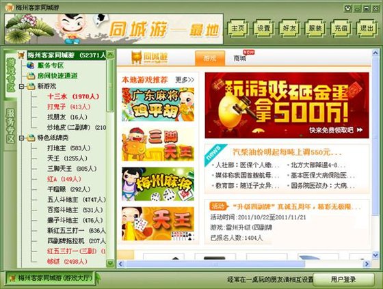 梅州同城游戲大廳是在梅州地方游戲的基礎(chǔ)上發(fā)展而來,游戲中心包含各類客家游戲,通過網(wǎng)絡(luò)游戲平臺(tái)把客家人的游戲介紹給全國(guó)的玩家,讓全國(guó)更加了解梅州客家文化、讓更多的游客來梅州游玩。