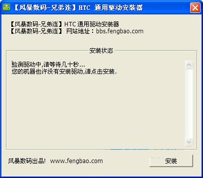 2、運行HTC 通用驅(qū)動安裝器.exe,識別電腦后,點擊安裝即可。連接或不連接手機均可安裝,不連接手機,安裝后,連接手機自動識別,任意HTC手機連接后均自動識別。