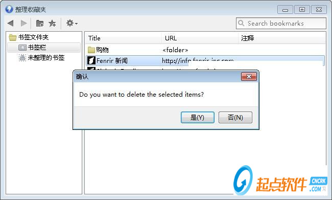 這時(shí)候?yàn)g覽器會(huì)彈窗詢問是否確定想要?jiǎng)h除選中的網(wǎng)頁書簽?點(diǎn)擊是就可以確定將選中的書簽從瀏覽器中刪除;