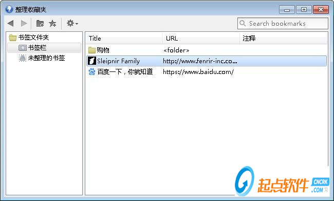 進(jìn)入瀏覽器的的整理收藏夾窗口界面,我們可以在這里看到瀏覽器中的網(wǎng)頁書簽內(nèi)容;