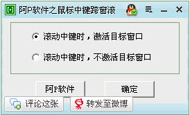 鼠標(biāo)中鍵跨窗滾運(yùn)行本程序后,無(wú)需激活目標(biāo)窗口,只需將鼠標(biāo)指針劃到目標(biāo)窗口任意位置(無(wú)需點(diǎn)擊),滾動(dòng)鼠標(biāo)中鍵即可操作目標(biāo)窗口縱向滾動(dòng)條。用戶亦可選操作目標(biāo)窗口時(shí)是否自動(dòng)激活該窗口。