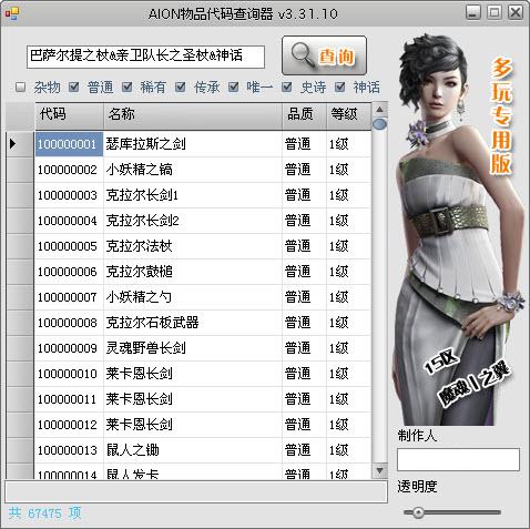 永恒之塔(AION)物品代碼查詢器 v4.0 中文版 永恒之塔(AION)物品代碼查詢器 v4.0 中文版