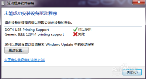 本文以連接hp的一款老式打印機:laserjet1010為例。由于其官網(wǎng)沒有提供win7系統(tǒng)使用的驅動程序,所以我們以下的安裝要稍微復雜一些。此打印機端口是usb的,首次插入電腦,電腦會自動安裝相應的驅動程序,但是有些驅動程序不能安裝成功,如圖: