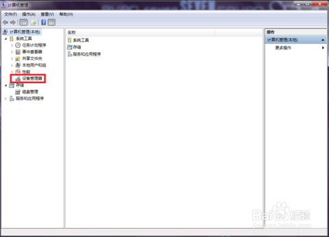 接著鼠標右鍵”我的電腦“--”管理“,選擇”設備管理器“,如圖: