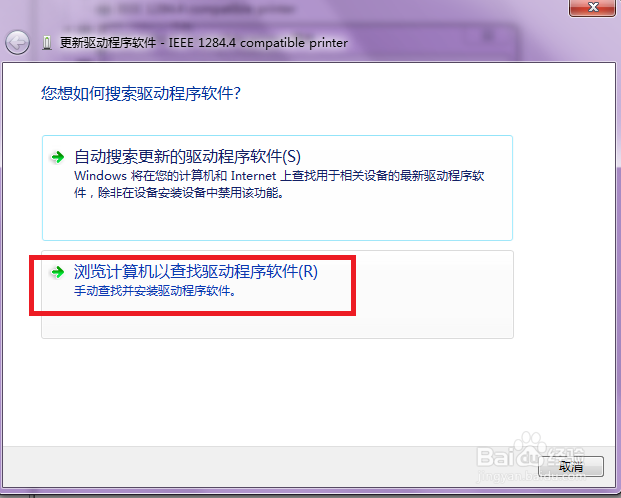 b. 彈出以下界面,選擇“瀏覽計算機以查找驅動程序軟件”(直接點擊,不用下一步)