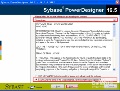 4、下拉菜單選擇HongKong,選中Iagreetotheterms.....,最鼠標(biāo)單擊Next按鈕;