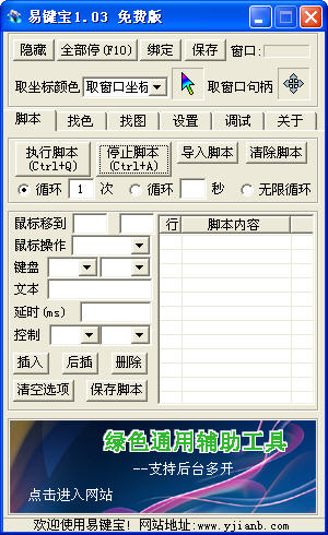 易鍵寶是一款完全模擬人工按鍵操作的軟件,具有免費(fèi)、綠色、簡單、易學(xué)等特點(diǎn)。易鍵寶適用于任何一款網(wǎng)絡(luò)游戲,也適用于辦公,輕松游戲,輕松辦公,解放你的雙手,釋放你的時(shí)間,為你節(jié)省了更多的有效時(shí)間,可以做更多的事情或者擁有更多的休息時(shí)間。