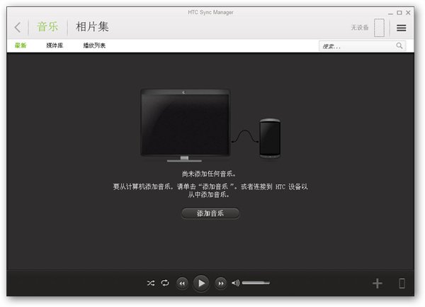 HTC One X使用HTC Sync ManagerHTC Sync Manager可用于在計算機與設備之間同步您的移動設備上的多媒體文件及Outlook 聯(lián)系人、日歷等,還可以用于播放音樂、查看視頻和照片等。