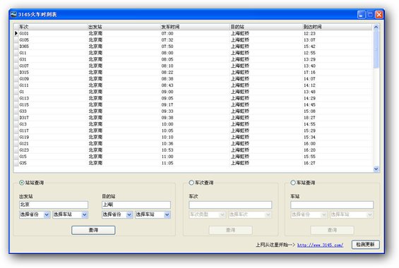 3145火車時(shí)刻表 v1.0 官方最新版 3145火車時(shí)刻表是一款可以查詢?nèi)珖?guó)列車時(shí)刻表的單機(jī)版軟件,它為您提供全國(guó)超過3,000個(gè)站點(diǎn)、4,000多列列車車次的最新信息,讓您實(shí)時(shí)了解列車客運(yùn)最新動(dòng)態(tài),假期旅行,過節(jié)回家,3145火車時(shí)刻表是您的好助手。