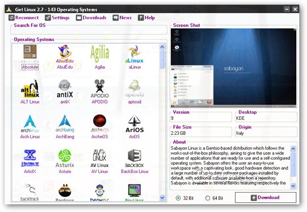 linux操作系統(tǒng)下載(Get Linux) 2.7 官方最新版 Get Linux是一款檢測linux操作系統(tǒng)更新情況的工具,用來檢測各個linux版本,并未用戶提供最新最豐富的linux系統(tǒng)鏡像下載