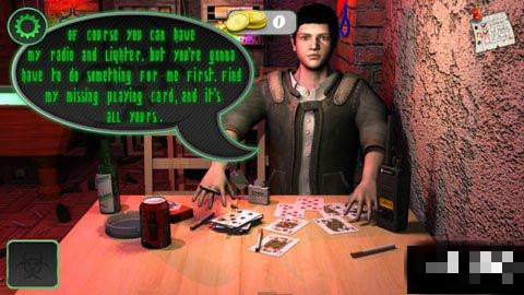 彈出對(duì)話,大致意思就是:你可以得到我的收音機(jī)和打火機(jī),但是你必須要給我找到我丟失的撲克牌。