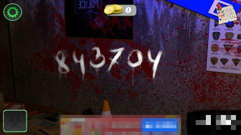 點(diǎn)擊拾取地上的槍支零件。點(diǎn)擊右邊的墻壁,上面寫著6個(gè)數(shù)字:843704。