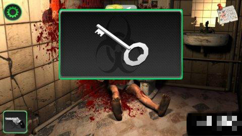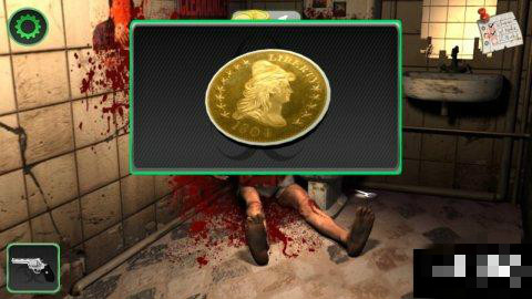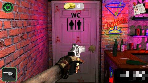 再次進(jìn)入酒吧,點(diǎn)擊廁所的門,使用手槍,射擊門鎖,打開(kāi)門。
