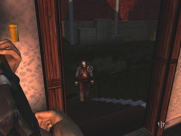 進(jìn)入廁所是一個(gè)喪尸,使用打火機(jī),照亮喪尸,然后使用手槍射擊喪尸。需要射4槍。
