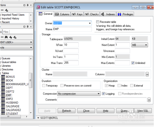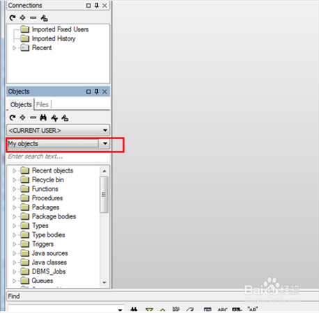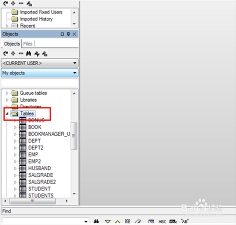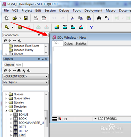 在對(duì)象瀏覽器選擇“my object”,這里邊就是SCOTT(當(dāng)前登陸的用戶的所有object)
