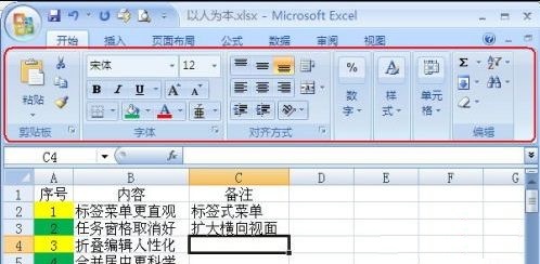Excel2007徹底拋棄了以往的下拉式菜單,做成了更加直觀的標簽式菜單(如下圖),大大方便了用戶的操作。尤其是對新手來說,完全可以在“零”時間內(nèi)上手操作。