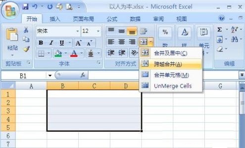 選中需要合并的多行單元格區(qū)域,展開“開始”標簽菜單,單擊“合并與居中”按鈕右側的下拉按鈕,在隨后彈出的下拉列表中(如下圖),選擇“跨越合并”選項即可。