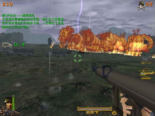 面對鬼子的步槍兵、火箭兵、坦克、飛機等等從地面到空中的瘋狂進攻,孤軍奮戰(zhàn)的你端起沖鋒槍,呼喚你的后備力量……讓緬甸的叢林成為敵人的煉獄吧!讓血戰(zhàn)緬甸帶給你更血腥,更火爆的射擊快感