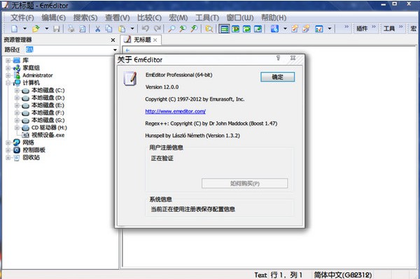 12.0.0 X64版本在我的機(jī)子上2003 64位系統(tǒng),主程序提示無效的程序,官方安裝版本亦是如此,不知是否是2003系統(tǒng)原因,還是作者編譯64位程序問題,大家在其它64位系統(tǒng)上試試看是否能運(yùn)行,實(shí)在無法運(yùn)行,64位系統(tǒng)可安裝32位的EmEditor兼容運(yùn)行,或者安裝舊版的11.0.5版本的64位EmEditor。