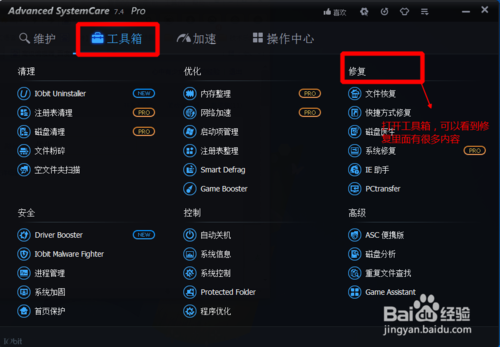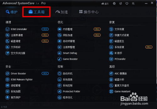 如:IObit Uninstaller、系統(tǒng)修復(fù)、啟動項管理、注冊表清理、Driver Booster、