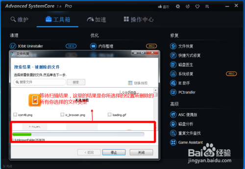 然后,我們等待掃描結(jié)果,這里的掃描結(jié)果是我們選擇的位置里面所有的被選擇的文件類型的文件,如我們選擇的是C盤里面的被刪除的圖片,那么這里的結(jié)果就是所有的C盤里面的被刪除的圖片。