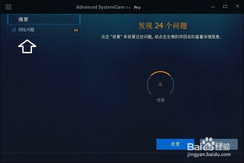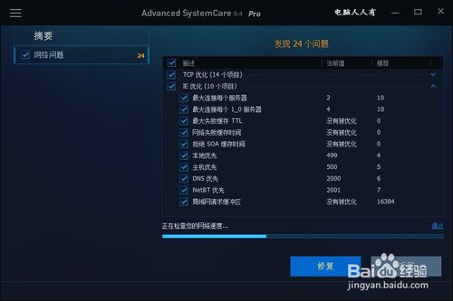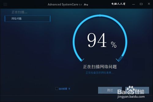 然后,打開Advanced SystemCare軟件→勾選網(wǎng)絡(luò)加速(首次掃描可以單項檢測,以便檢驗實測效果)→掃描。